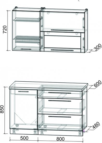• Высота нижних шкафов 85 см