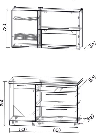 • Ширина кухни 60 см