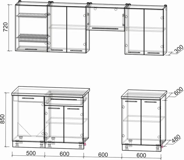 • Ширина кухни 60 см