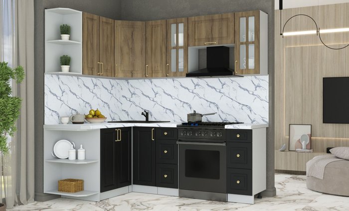 Мила Шато 1.5x2.1 LV (дуб вотан/черный/белый гранит)