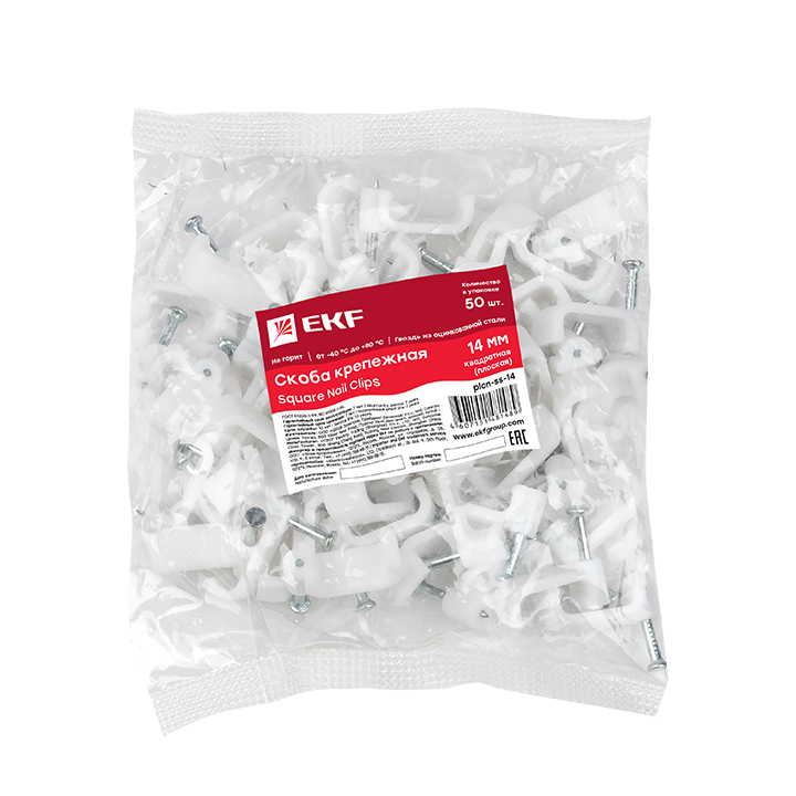 • Тип скобы с гвоздем, форма плоская, фиксация до 14 мм