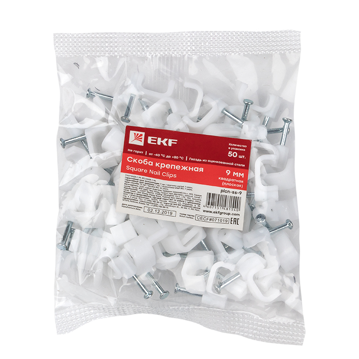 • Тип скобы с гвоздем, форма плоская, фиксация до 9 мм