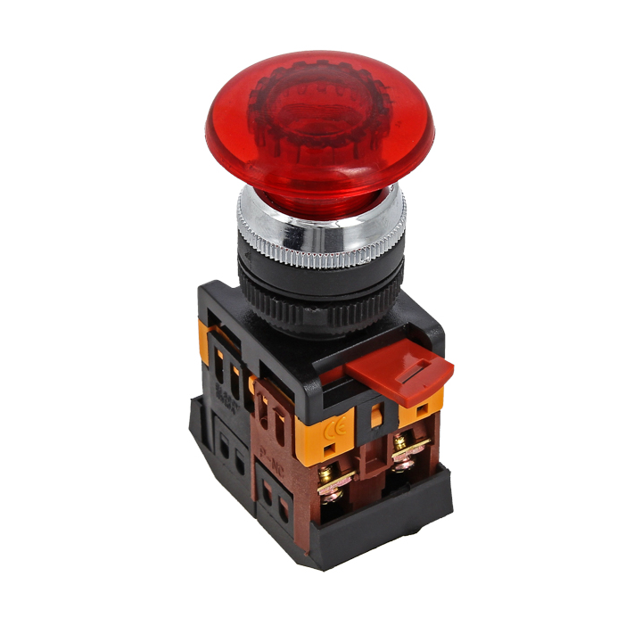 Кнопки типа "Грибок" применяются в электрических цепях переменного тока частотой 50/60 Гц с напряжением до 660 В и постоянным напряжением до 400 В. Исполнение такого типа ( активная часть выступает) позволяет простым нажатием быстро подать управляющий сигнал на оборудование. Включение кнопки облегчается за счет большой площади поверхности нажатия.
