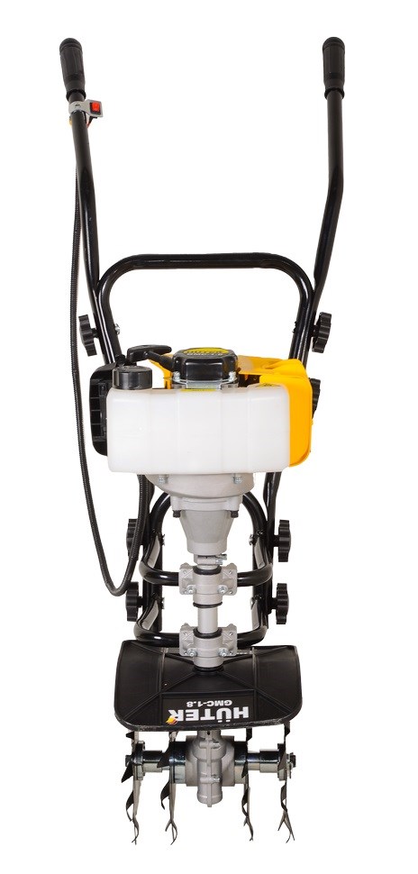 Мотокультиватор Huter GMC-1.8 – это универсальный и востребованный инструмент в сельском хозяйстве, который используется для выполнения различных садовых и огородных работ на участках: выравнивания, прополки, разрыхления земли. Установка обладает оптимальными качествами для обработки достаточно больших участков с минимальными усилиями. Мотокультиватор позволяет обрабатывать поверхность шириной 23 сантиметра, что ускоряет работу на небольших приусадебных участках. Устройство оснащается мощным бензиновым двигателем на 1 лошадикую силу. Складная компактная конструкция легко хранится и перевозится.