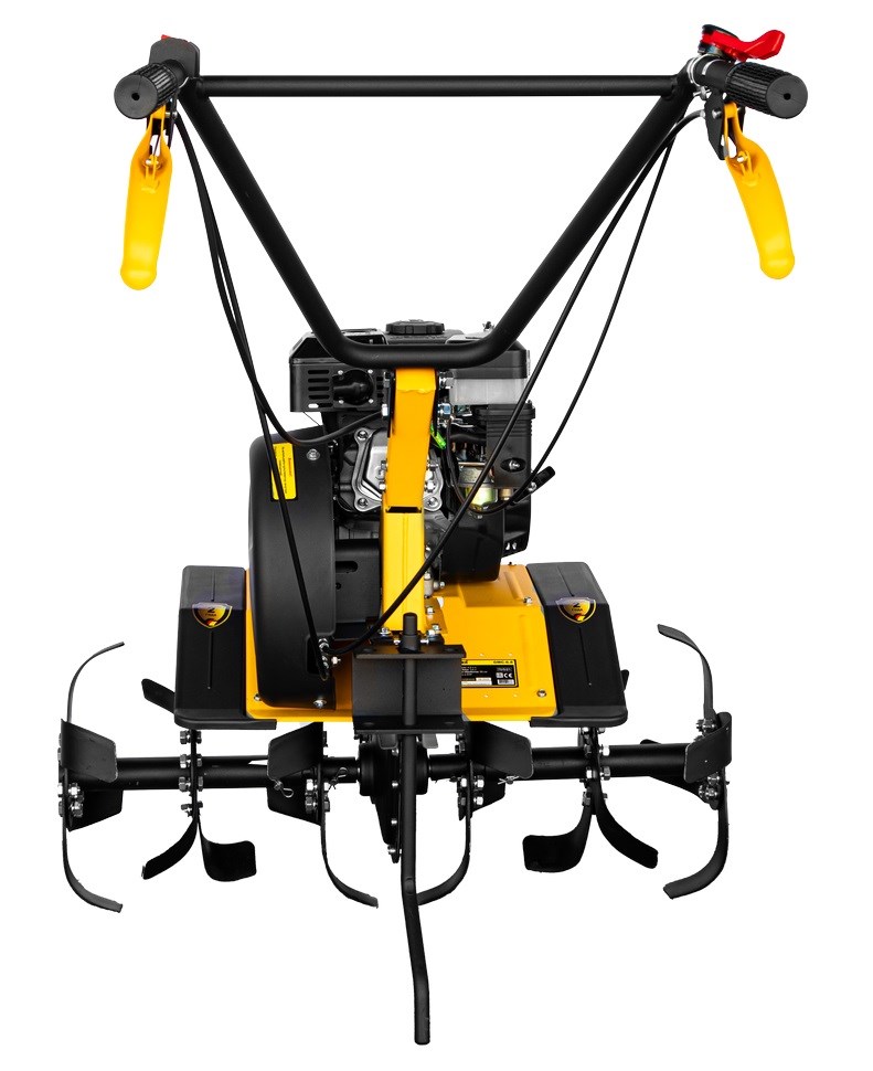Мотокультиватор Huter GMC-6.8 используется для рыхления, выравнивания и обработки почвы, облегчает подготовку грунта перед сезонными посадками. Агрегат имеет бензиновый двигатель мощностью 6,8 лошадиных сил и две передачи, одну вперед и одну назад. Ширина культивирования 90 сантиметров вместе с топливным баком в 3,6 литра позволяют использовать культиватор на больших площадях. Все рычаги управления выведены на рукоятку, это делает работу более удобной.