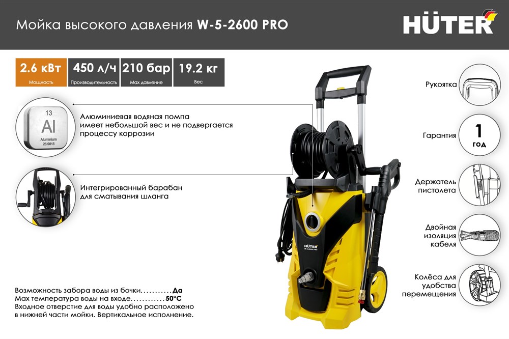 Мойка Huter W-5-2600 PRO отлично подойдет для мытья машины, мотоцикла, уличной плитки и садовых инструментов, фасадов, заборов и прочего. Данная мойка отличная возможность сделать рутинную работу чуть приятнее и быстрее. Хорошая производительность, полная комплектация и надежное исполнение. Этого более чем достаточно для длительного и комфортного использования.