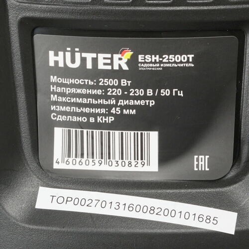 Электрический измельчитель Huter ESH-2500T для переработки мелких веток или кустов диаметром до 45 мм. Оборудован мощным двигателем 2,5 кВт, работающим от электрической сети 220 В. Для защиты двигателя от перегрева установлен предохранитель. Благодаря высокой скорости вращения режущего элемента на выходе получается мелкая мульча, попадающая в специальный контейнер. Для обеспечения маневренности данная модель оснащена колесами.