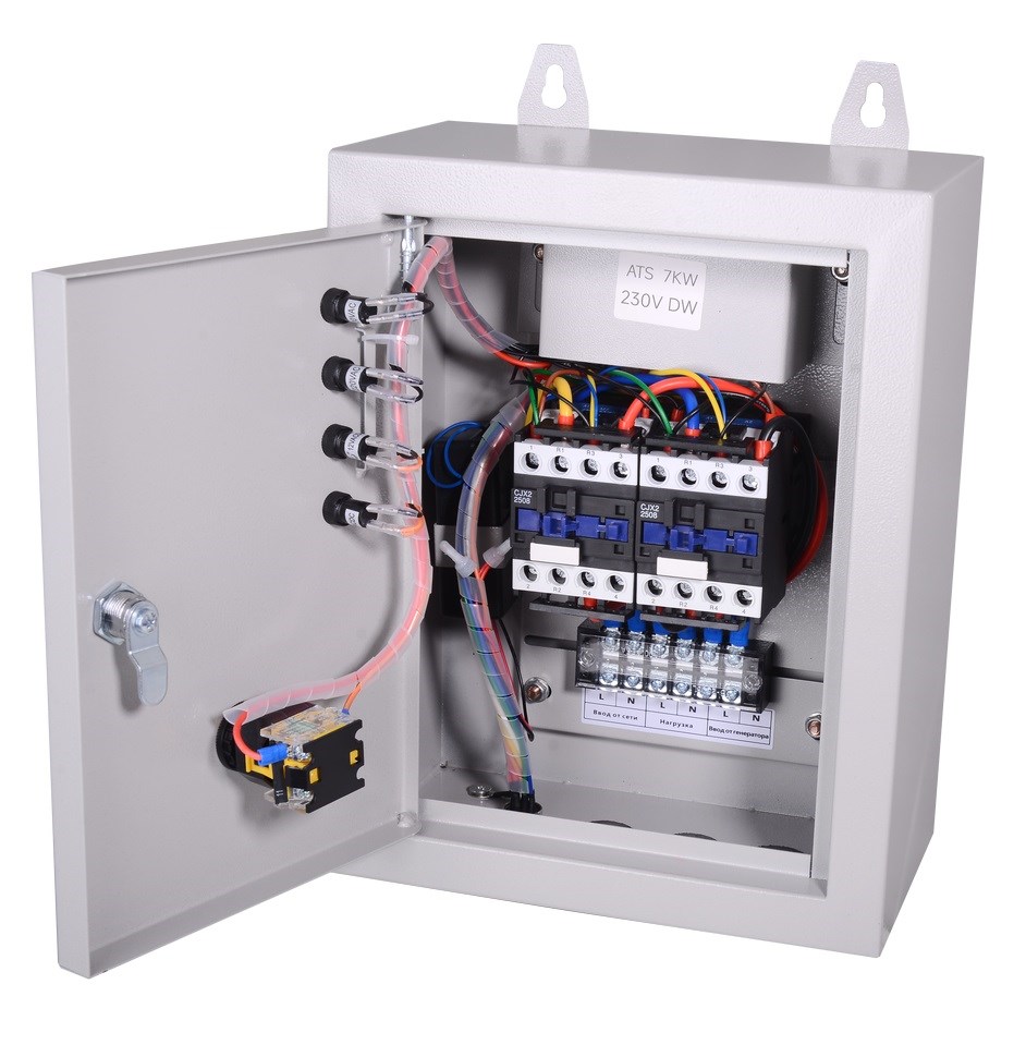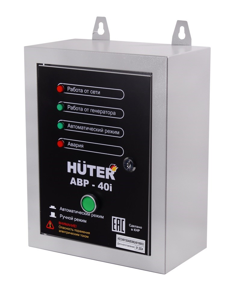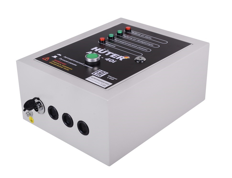 АВР для бензинового генератора Huter АВР-40i представляет собой специальный блок, который автоматически переключает подачу электричества с основного источника на резервный и обратно. Максимальная нагрузка составляет 10 кВт. Запуск станции осуществляется при снижении напряжения до 100 В. АВР осуществляет 3 попытки запуска. Время задержки не превышает 2-3 сек, благодаря чему минимизирован риск пропадания энергоподачи к важному электронному оборудованию. При стабилизации подачи электричества подает сигнал переключения на основной носитель и отключает бензиновый генератор. Интуитивно понятная система индикации позволяет следить за статусами работы блока. В комплект входит силовой кабель с коннекторами, а также набор ключей для ограничения доступа к внутренним узлам блока.