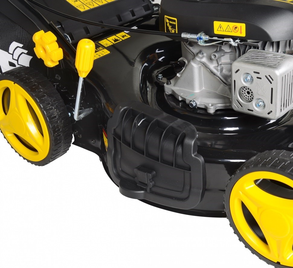 Газонокосилка бензиновая Huter GLM-460ST используется для обработки участков и газонов средней площади, мощность 5 л.с. дает высокую производительность при стрижке газона. Агрегат оснащен семиуровневой регулировкой высоты среза, большие задние колеса обеспечивают передвижение прибора по неровной поверхности. Металическая дека придает жескости конструкции и не боится ударов камней и других предметов, которые могут попасть в рабочую зону из обрабатываемой поверхности. Косилка самоходная с шириной скоса 460 мм, большой объем травосборника 60 л увеличивает время работы до полного заполнения, так же есть функция бокового выброса и мульчирования. Складная ручка упрощает транспортировку и хранение изделия.