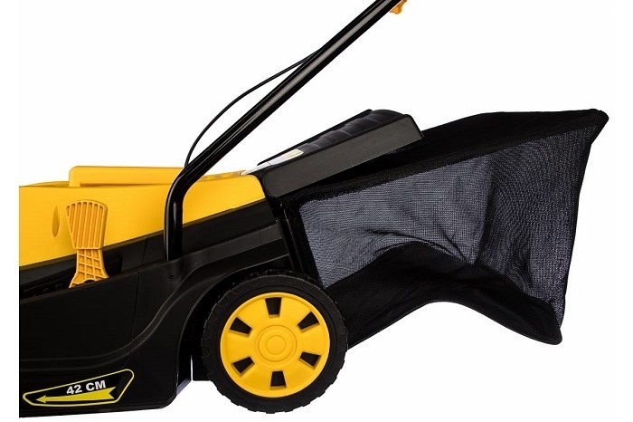 Электрическая газонокосилка Huter ELM-1800T – это выбор для тех, кто ценит высокую производительность оборудования, компактность и многофункциональность. Данная установка проста в эксплуатации и уходе, не требует особых усилий и времени для обслуживания. Это идеальный вариант для тех, кто хочет поддерживать приусадебную территорию в привлекательном и ухоженном виде. Газонокосилка состоит из корпуса, сделанного из высокопрочного пластика, который выдерживает большие нагрузки. Устойчивость к коррозии – основное преимущество техники. Также устройство оснащается емкостью на 45 литров для сборки травы, что существенно продлевает время автономной работы. С помощью ножа обеспечен оптимальный срез даже густых зарослей.