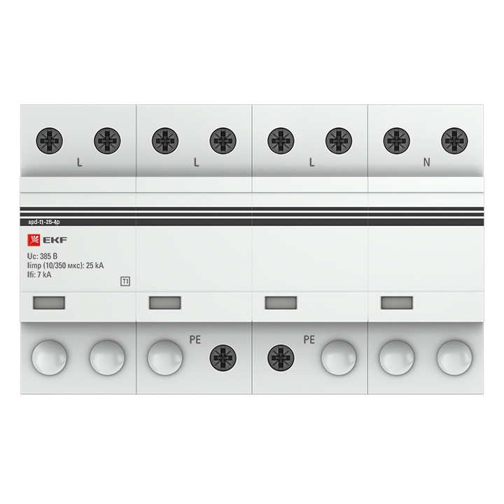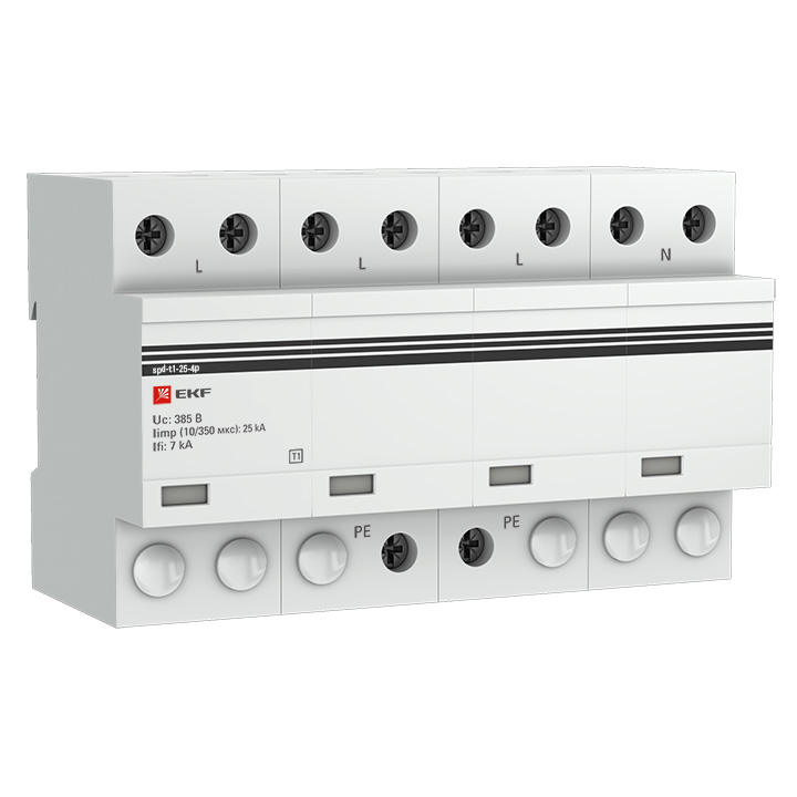 Устройство защиты от импульсных перенапряжений (УЗИП) тип 1 EKF PROxima предназначено для ограничения переходных перенапряжений и отвода импульсов тока в сетях переменного тока частоты 50 Гц.