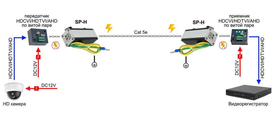 Устройство грозозащиты цепей видео HDCVI/HDTVI/AHD одноканальное для кабеля витой пары. Двухступенчатая защита. Полоса пропускания видеосигнала до 80MHz. Максимальное длительное рабочее напряжение (Uс) DC6V. Номинальный ток разряда (8/20мкс, In) 5kA. Суммарный ток разряда (8/20мкс, Itotal) 10kA. Время отклика не более 1нс. Вх. - Клм.(2pin). Вых. - Клм.(2pin). Монтаж на DIN-рейку. Размеры (ШхВхГ): 25x68x25мм. Рабочая температура -40...+85°C.