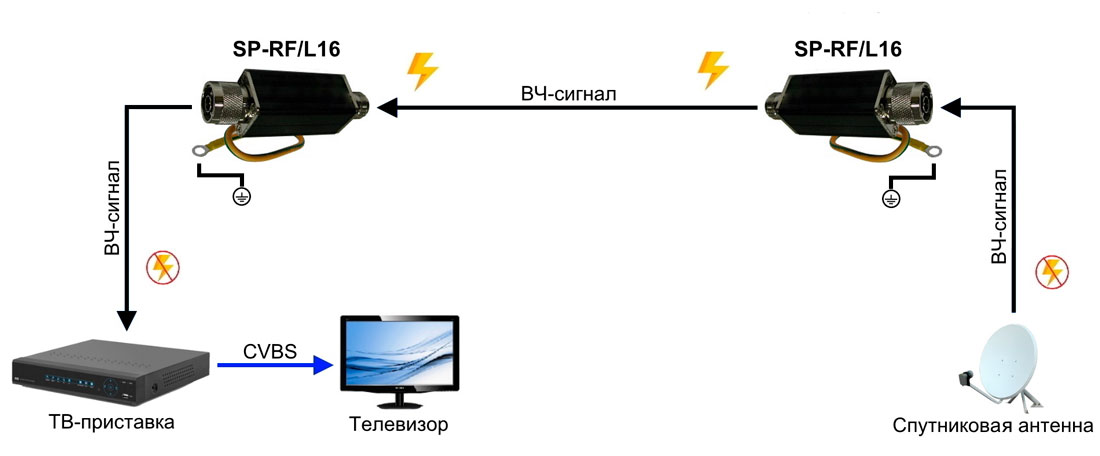 Устройство грозозащиты для цепей 0-2ГГц. Подключение N-штеккер (L16). Размеры (ШxВxГ): 25х25х60мм (с разъёмами 25х25х93мм).