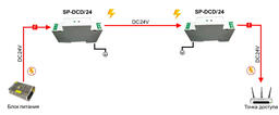 Устройство для защиты цепей питания 24В. Исполнение на Din-рейку. Размеры (ШxВxГ): 14x89x65мм.