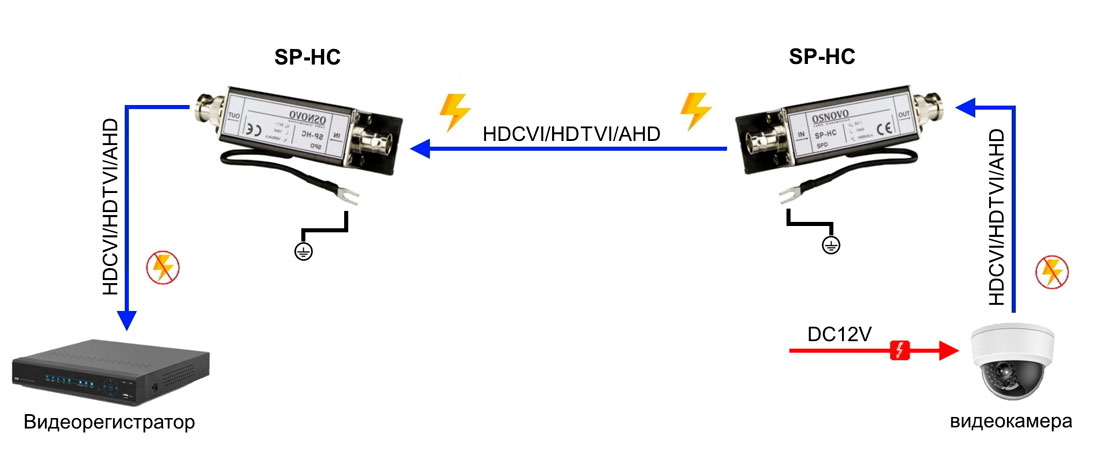 SP-HC Устройство грозозащиты цепей видео HDCVI/HDTVI/AHD одноканальное для коаксиального кабеля. Двухступенчатая защита. Полоса пропускания видеосигнала до 80MHz. Максимальное длительное рабочее напряжение (Uс) DC6V. Номинальный ток разряда (8/20мкс, In) 10kA. Суммарный ток разряда (8/20мкс, Itotal) 20kA. Время отклика не более 1нс. 1 вход (BNC-мама), 1 выход (BNC-папа). Монтаж на DIN-рейку. Размеры (ШхВхГ): 25x82x25мм. Рабочая температура -40...+85°C.