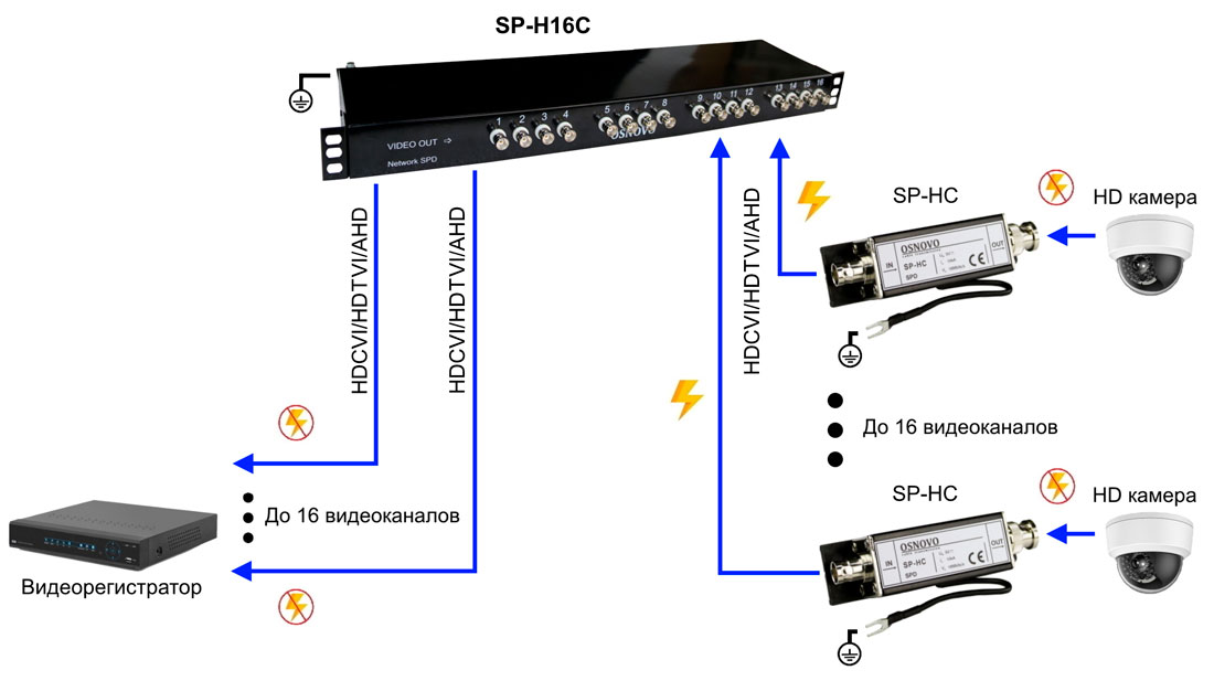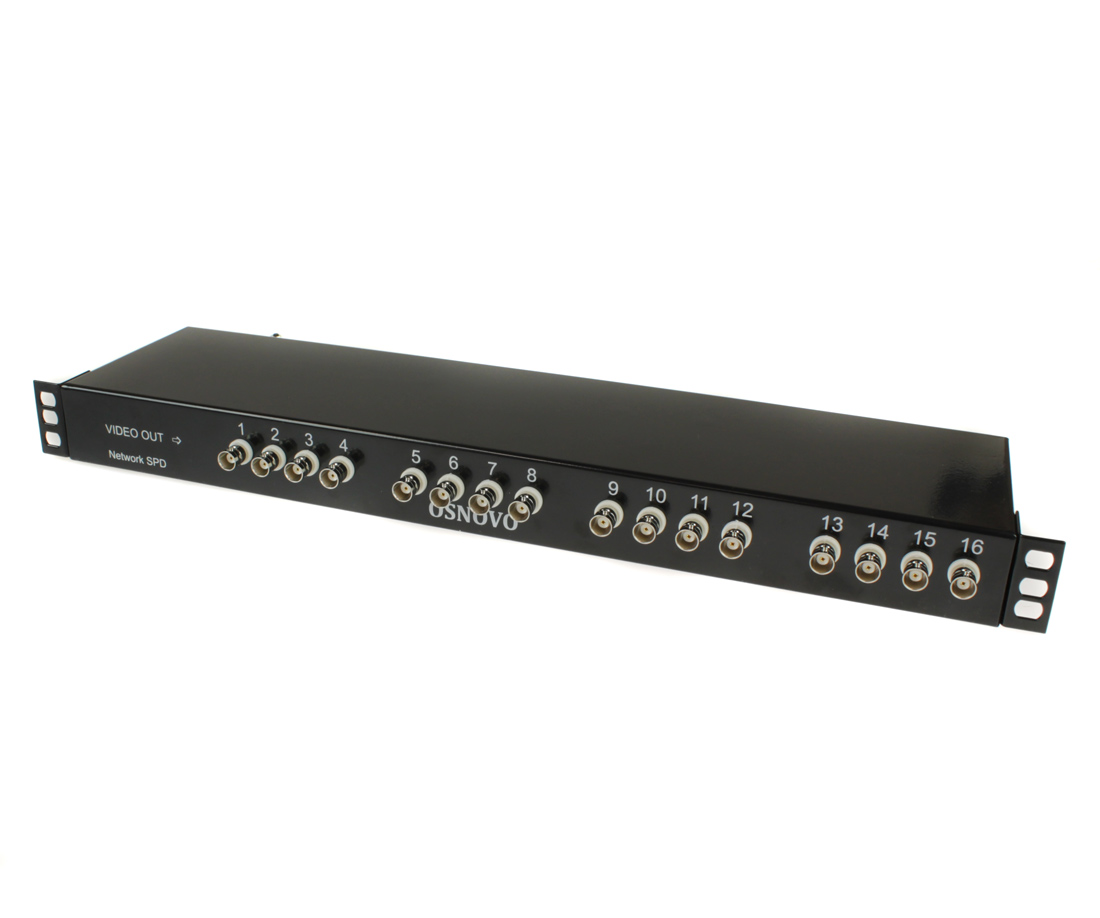 SP-H16C Устройство грозозащиты цепей видео HDCVI/HDTVI/AHD на 16 каналов для коаксиального кабеля. Двухступенчатая защита. Полоса пропускания видеосигнала до 80MHz. Максимальное длительное рабочее напряжение (Uс) DC6V. Номинальный ток разряда (8/20мкс, In) 10kA. Суммарный ток разряда (8/20мкс, Itotal) 20kA. Время отклика не более 1нс. Вх. - BNCx16. Вых. - BNCx16. Размеры (ШxВxГ): 450x210x40мм. Рабочая температура -40...+85°C.