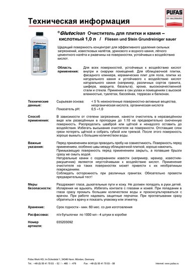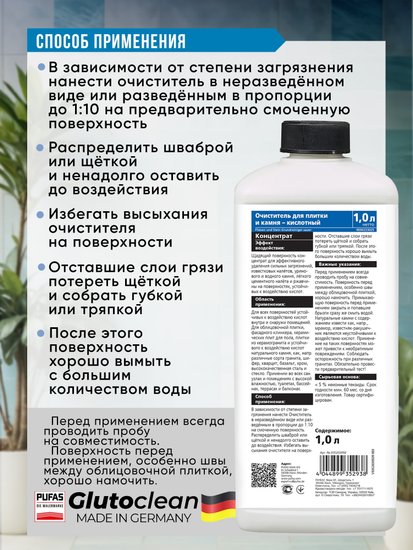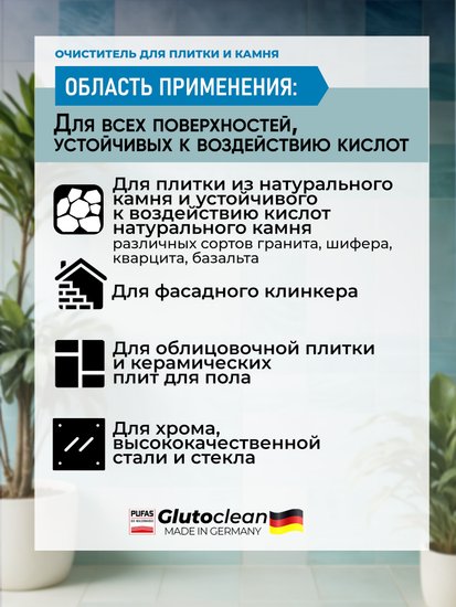 Glutoclean для очистки плитки и камня кислотный 1 л