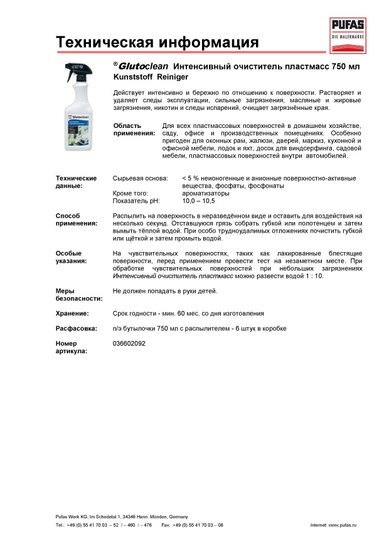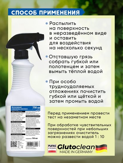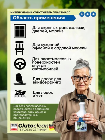 - Категория моющего средства для стеклянных поверхностей, пластика