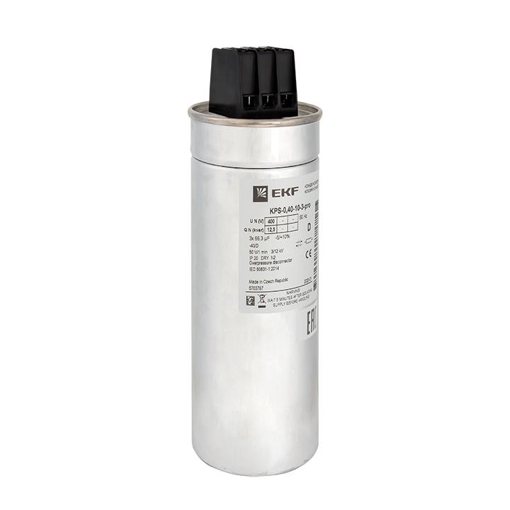 "Конденсаторы косинусные КПС EKF PROxima применяются для статической и автоматической компенсации коэффициента реактивной мощности в сетях переменного тока.