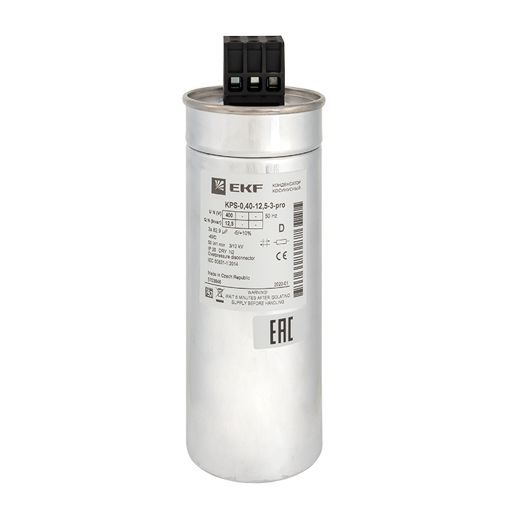 "Конденсаторы косинусные КПС EKF PROxima применяются для статической и автоматической компенсации коэффициента реактивной мощности в сетях переменного тока.