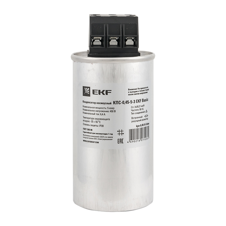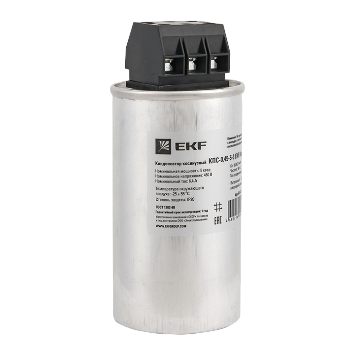 "Конденсаторы косинусные КПС EKF PROxima применяются для статической и автоматической компенсации коэффициента реактивной мощности в сетях переменного тока.