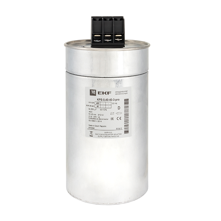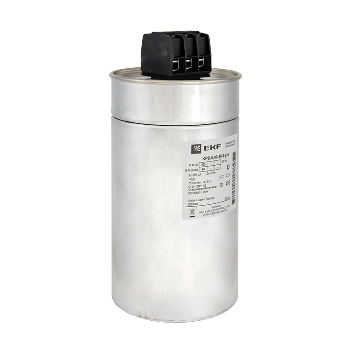 "Конденсаторы косинусные КПС EKF PROxima применяются для статической и автоматической компенсации коэффициента реактивной мощности в сетях переменного тока.