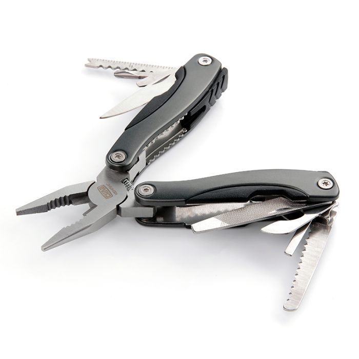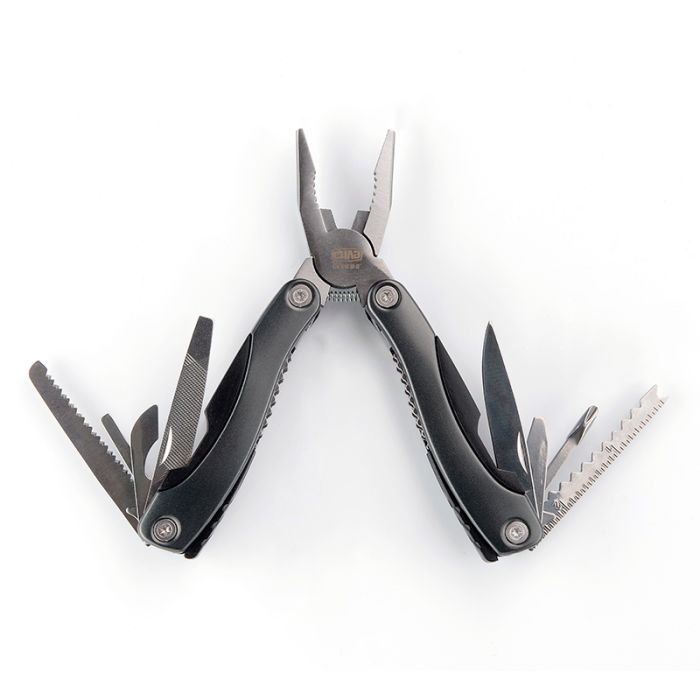 • Інструменти в комплекті викрутка SL (6мм) , викрутка SL (5мм) , викрутка PH , гак , лезо ножа , металевий напилок , викрутка SL (3мм) , пилка , відкривачка , рибочистка , Лінійка , Відкривачка для банок , Кусачки , Плоскогубці