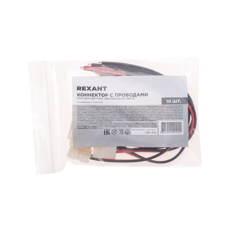 Коннектор – это устройство, предназначенное для обеспечения электрического соединения между блоком питания и одноцветной светодиодной лентой SMD шириной 10 мм.