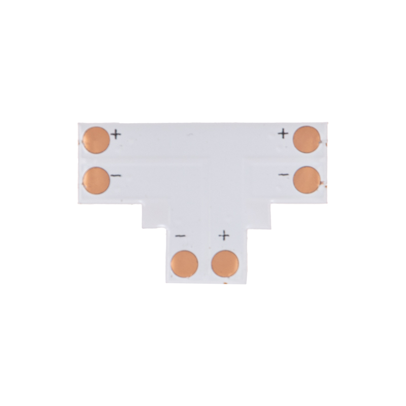 T-образный коннектор – это устройство, предназначенное для соединения трех отрезков светодиодных лент SMD шириной 8 мм.