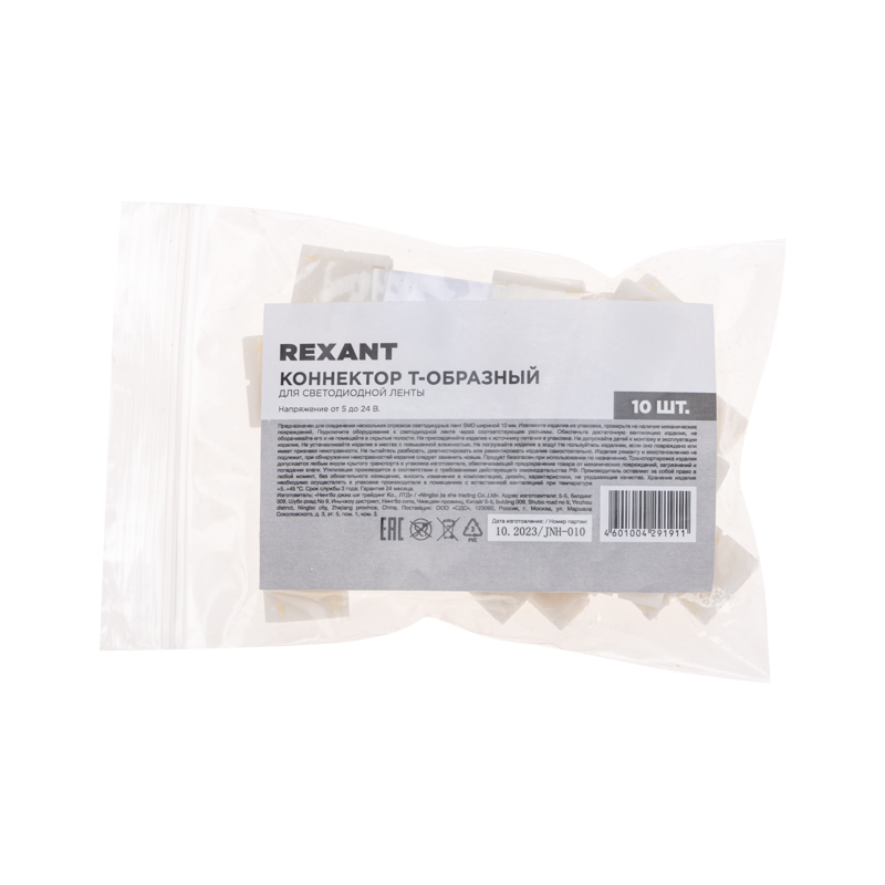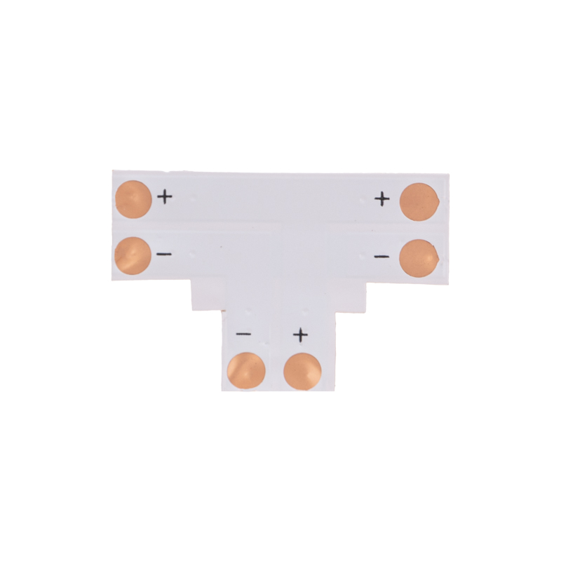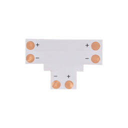 Коннектор выполнен в T-образной форме, позволяющей удобно и безопасно подключить ленты друг к другу. Представляет собой удобное решение для создания более сложных конфигураций и эффектов освещения в пространстве.