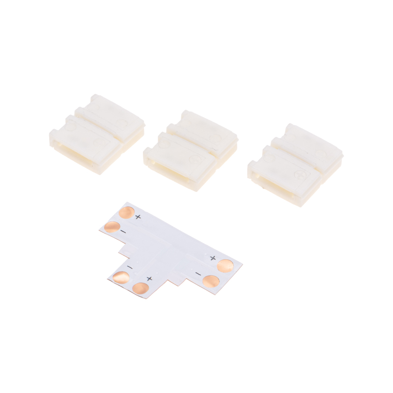 T-образный коннектор – это устройство, предназначенное для соединения трех отрезков светодиодных лент SMD шириной 10 мм.