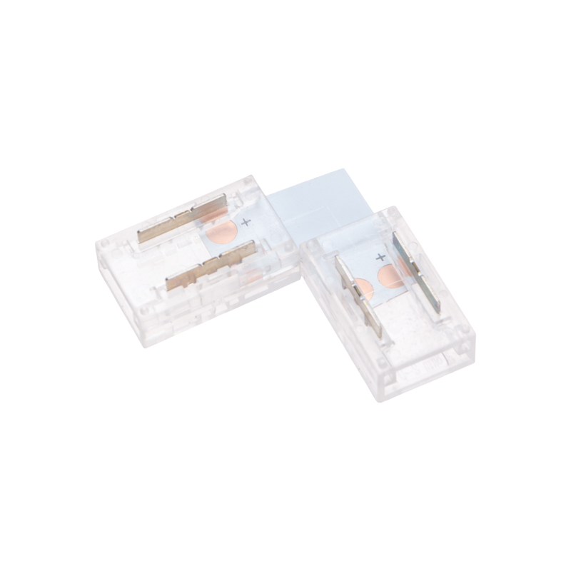 L-образный коннектор – это устройство, предназначенное для соединения нескольких отрезков одноцветных светодиодных лент COB шириной 8 мм.