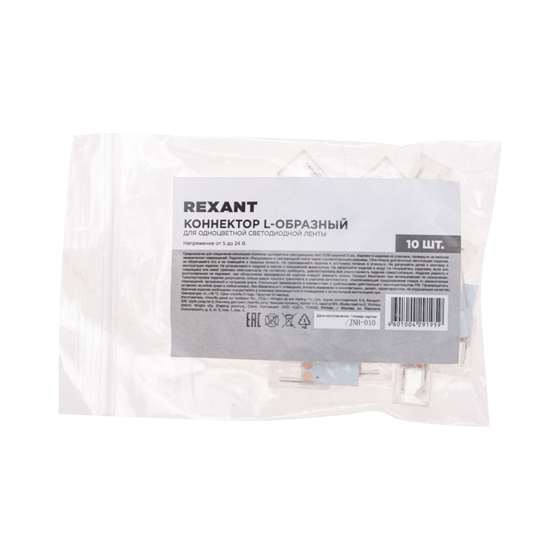 Коннектор выполнен в L-образной форме, позволяющей удобно и безопасно подключить ленты друг к другу под углом 90 градусов.