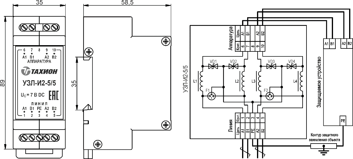 Устройство защиты интерфейсов УЗЛ-И2-5/5 20174