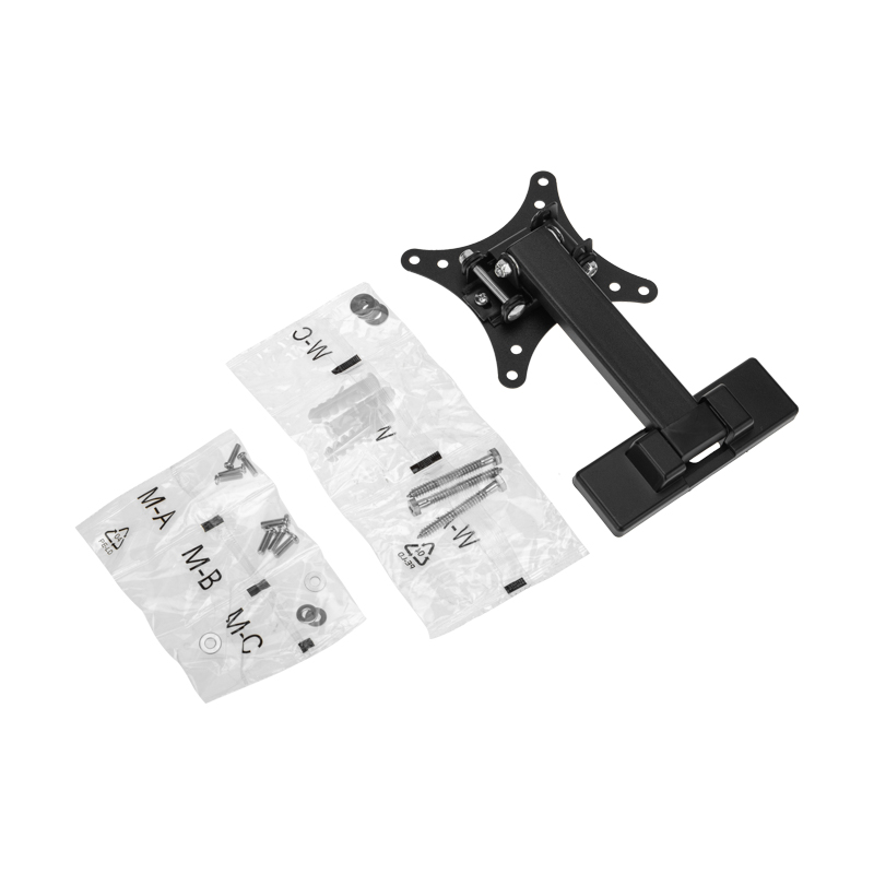 Кронштейн REXANT серии HOME предназначен для крепления LED/LCD/PLASMA телевизоров 13"- 27" дюймов к стене. Устройство оснащено наклонно-поворотным механизмом (с 1 коленом), который позволяет свободно регулировать положение телевизора. Такая возможность обеспечивает комфортный и удобный просмотр вне зависимости от Вашего расположения в комнате. В любой момент телевизор можно повернуть в нужную Вам сторону, выставить необходимый угол наклона и избежать бликов при смене освещения. Конструкция механизма позволяет точно и надежно фиксировать заданное положение с максимальной точностью. Кронштейн изготовлен из прочной и износоустойчивой стали, что гарантирует безопасность в процессе использования. Все необходимые крепления для установки кронштейна поставляются в комплекте с изделием, что обеспечивает удобный и быстрый монтаж.