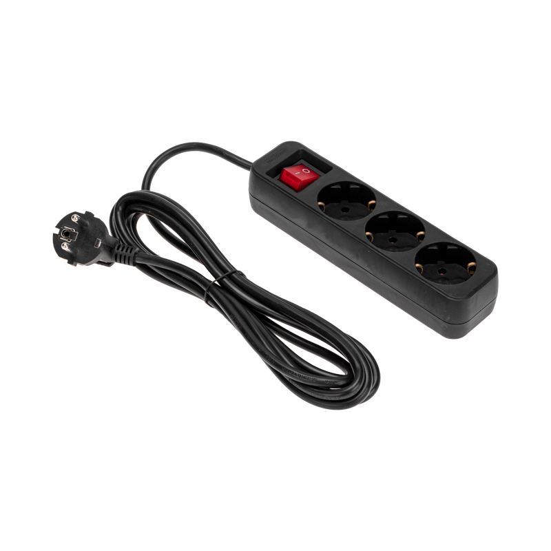 Мощность – 3500Вт. Сечение провода – 3х1,0мм². Тип вилки – угловая. Цвет удлинителя – черный.