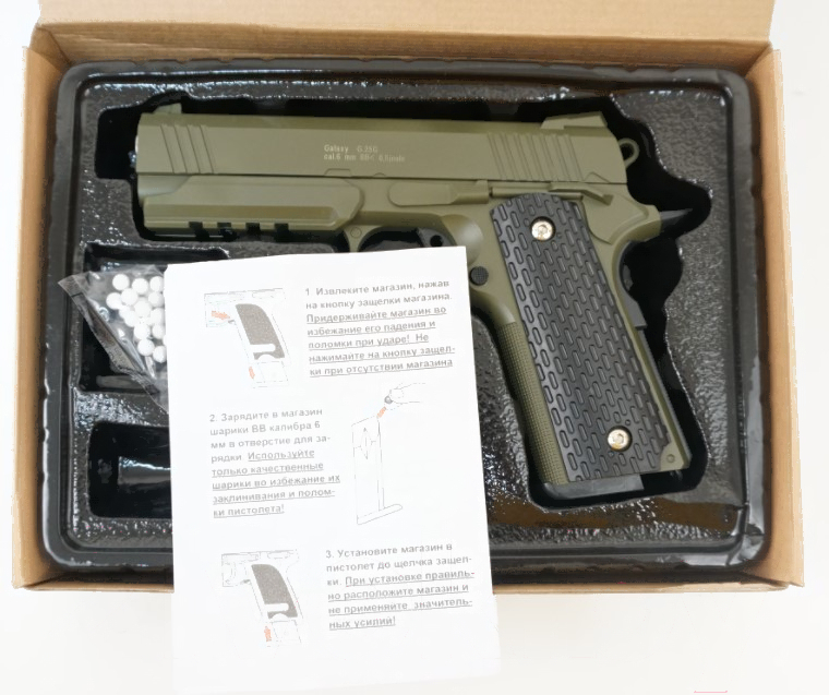 Пистолет страйкбольный GALAXY G.25G пружинный (6мм, зеленый)