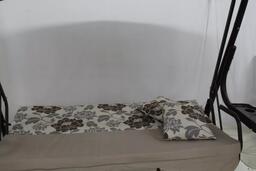 Эти садовые качели – это идеальное сочетание комфорта, функциональности и стиля, созданное для вашего приятного отдыха на свежем воздухе. Они станут любимым местом для всей семьи в саду, на даче или террасе.Основные преимущества:• Просторное и удобное сиденье: Мягкий элемент с наполнителем из аэроформа (50 мм) и листового поролона (30 мм) обеспечивают максимальный комфорт во время отдыха.• Надежная и прочная конструкция: Каркас из стальной трубы Ø 51х1,4мм с полимерным покрытием гарантирует долговечность и устойчивость качелей.• Регулируемая спинка: Вы можете легко менять угол наклона спинки и зафиксировать её в разложенном положении для максимального удобства.• Защита от насекомых: Тент с пришивной противомоскитной сеткой спереди на запах защитит вас от комаров и других надоедливых насекомых.• Водоотталкивающий тент: Тент из прочной ткани с водоотталкивающей отделкой защитит от солнца и небольшого дождя, позволяя наслаждаться отдыхом в любую погоду.• Удобные полки: