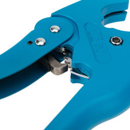 Оснащен храповым механизмом для уменьшения усилий сжатия рукояток. Пружинный механизм взвода ручек трубореза в рабочее положение обеспечивает быстроту и удобство работы.