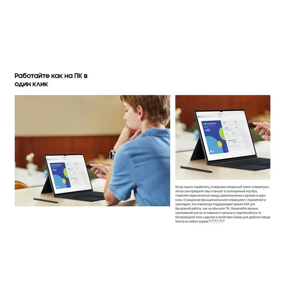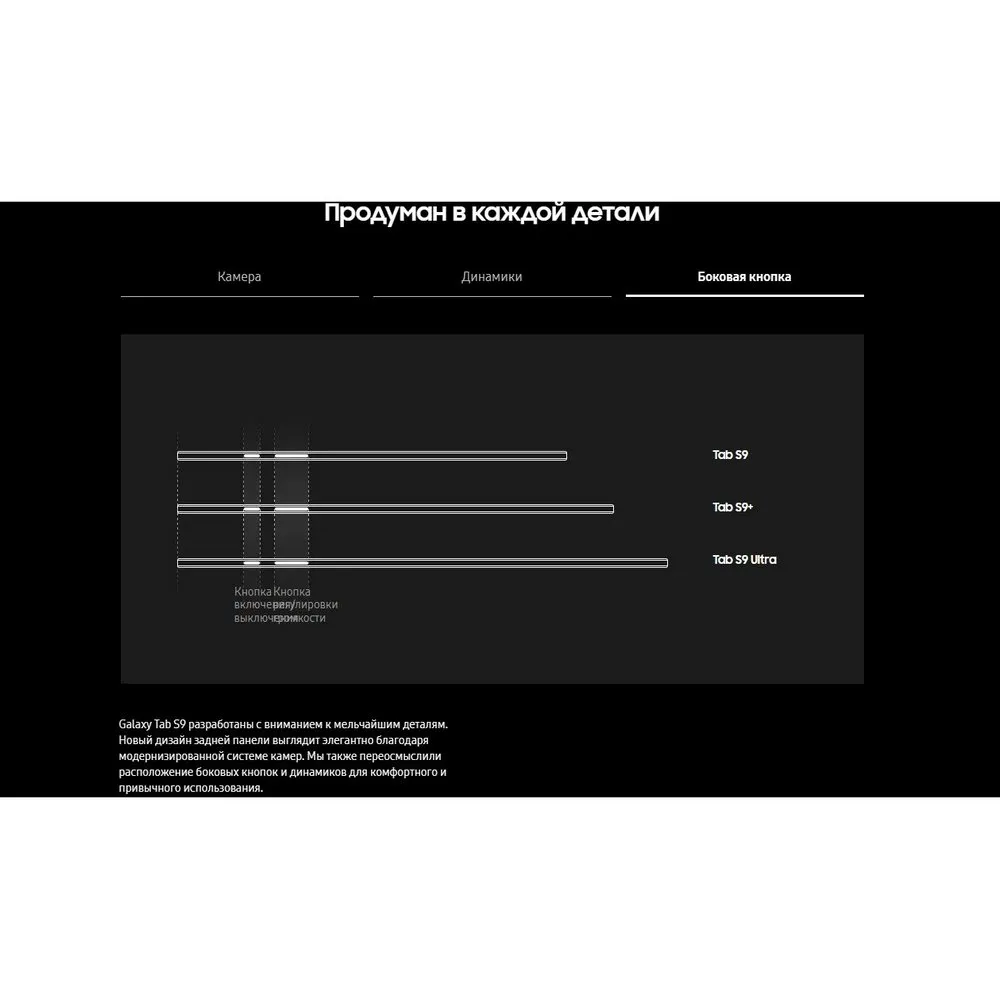 Планшет Samsung Galaxy Tab S9 – это производительный гаджет в удобном корпусе, который способен справиться с тяжёлой работой в любой обстановке. Устройство подойдёт для гейминга, дизайна, решения любых рабочих или учебных задач.