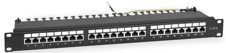 Патч-панель PP-1U-24S-C6-CM кат. 6, 24 порта, экранированная, 1U, с задним кабельным организатором, черная