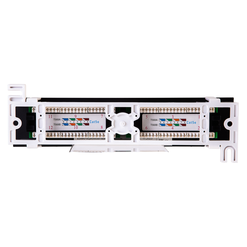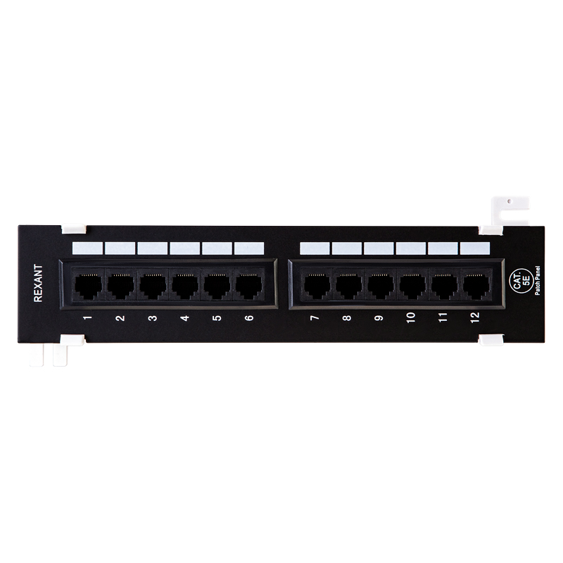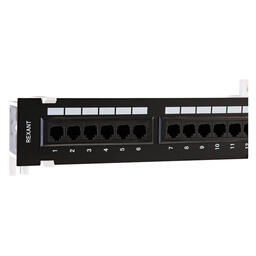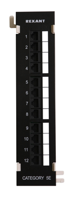 Патч-панель, она же коммутационная панель представляет собой панель с 12 гнездами RJ-45, расположенными на лицевой стороне панели, и контактами, предназначенными для фиксированного соединения с кабелями, на тыльной стороне. Самая распространенная в телекоммуникациях патч-панель – это фиксированная коммутационная панель для стандартных информационных шкафов. Патч-Панель 10" 12 гнезд Cаt.5e выполнена с однотипными разъемами – неэкранированными RJ-45 разъемами для кабелей категории 5е. Для фиксированного соединения с кабелями используются IDC-разъемы. Патч-панель 10" 12 гнезд Cаt.5e монтируется на стенку. Использование патч-панелей поможет организовать кабельное пространство и упорядочить кабельную разводку.