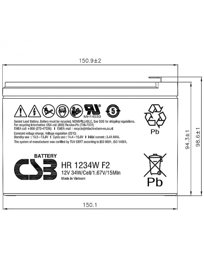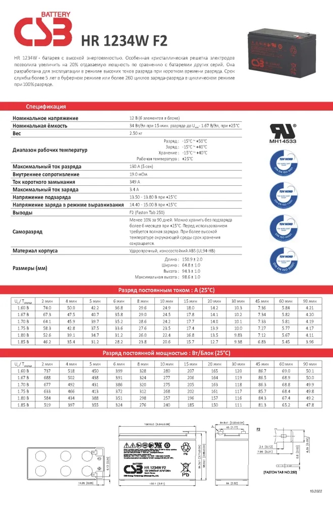 Аккумулятор CSB HR 1234WF2 12V/9Ah