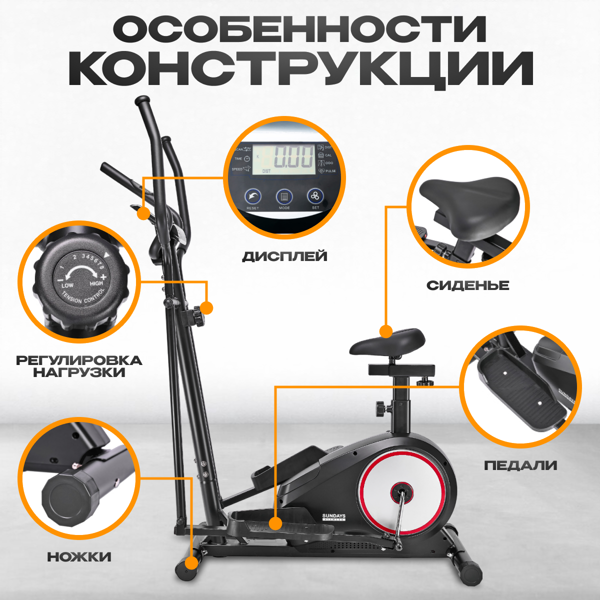 Эллиптический тренажер Sundays Fitness Simple Line K8508HA (черный/красный)