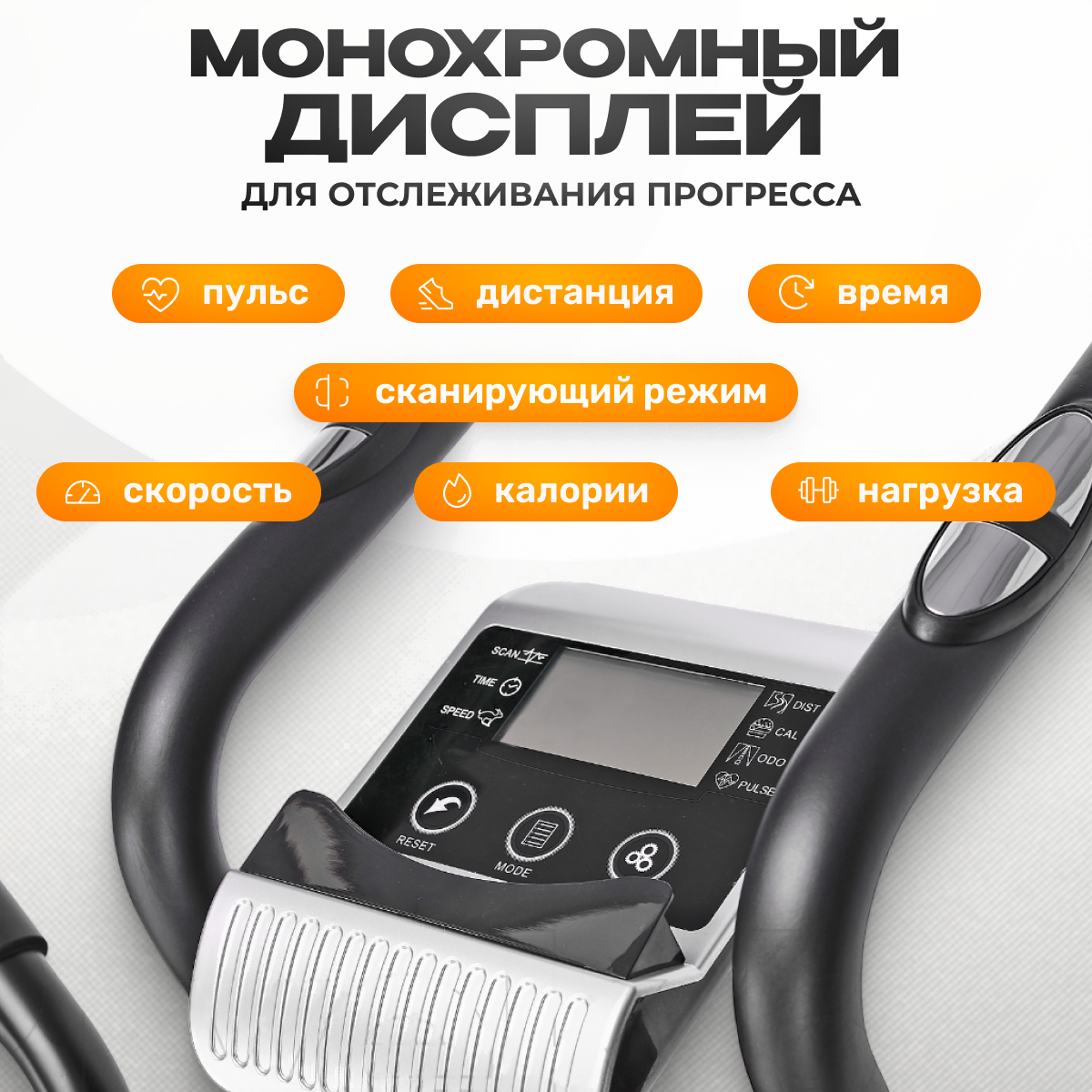 Индикацияуровень нагрузки, пульс, пройденное время, оставшееся время, пройденное расстояние, оставшееся расстояние, расход калорий, текущая скорость, сканирующий режим