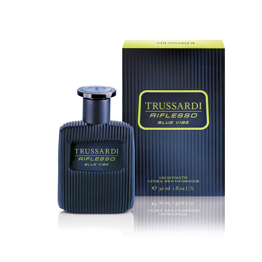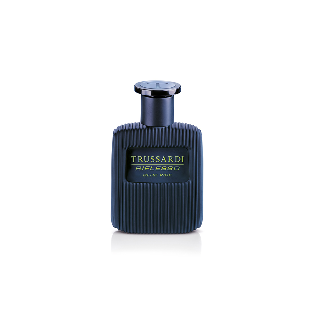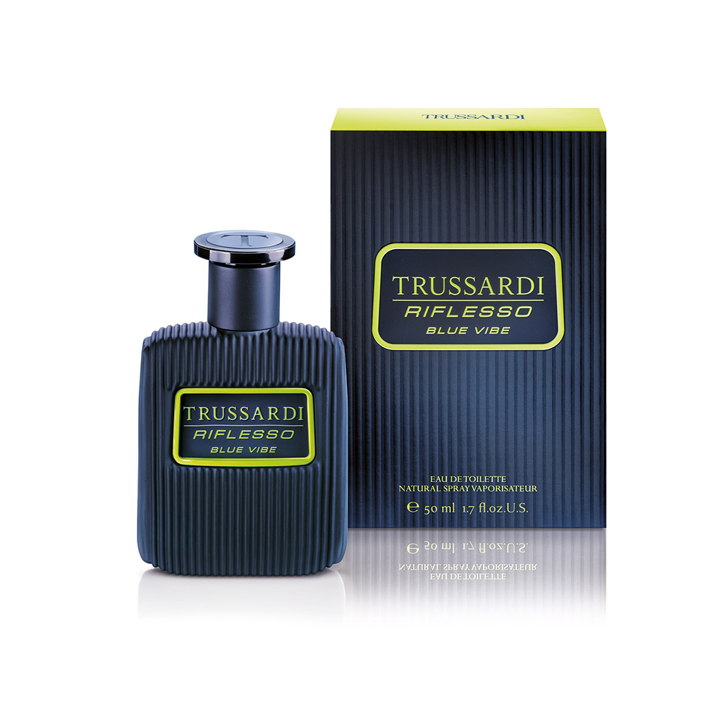 Созданная ароматная пирамида Вероники Ниберг аромата Trussardi Riflesso Blue Vibe основана на контрастах - горячем и холодном, рациональном и эмоциональном, элегантном и бунтарском, сладком и горьком. Аромат иногда заставляет вас почувствовать ночь и ее секреты, но в нем также есть дневные энергичные вибрации. Аромат относится к группе восточных и древесных ароматов. Аккорды рома, вербены и плода юзу выделены в начальных нотах: они сладкие и свежие. В средних нотах запах герани приглашает вас насладиться нюансами лесных орехов, а затем погрузиться в захватывающую силу вербены. Основные ноты из итальянской кожи, янтаря и табачных аккордов соединяет аромат с наследием бренда Trussardi и итальянскими ремесленными традициями.