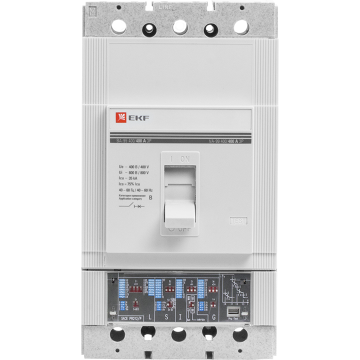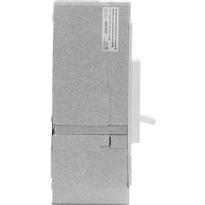 "Выключатель ВА-99 выполнен в виде моноблока и состоит из основания и крышки с фальшпанелью, в которой имеется окно для рукоятки управления и толкатель кнопки «Тест» - проверки механизма отключения выключателя.