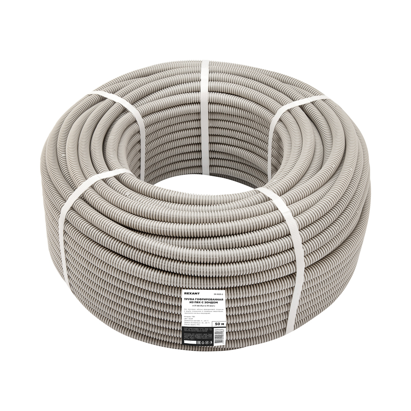 Труба гофрированная из ПВХ с зондом Ø 25 мм (бухта 50 м/уп.) REXANT предназначена для одиночной прокладки в них скрытым, полускрытым и открытым способами в стационарных электроустановках бытового и аналогичного назначения, эксплуатируемых как внутри помещений, так и на открытом воздухе электрических, телефонных, компьютерных и телевизионных сетей. Работающих при электрическом напряжении постоянного или переменного тока величиной не более 1000 Вольт.Гофрированная труба изготовлена из первичного сырья, высококачественной композиции ПВХ. Использование гофротрубы ПВХ значительно сокращает временные затраты на организацию электропроводки.Технические характеристики:Сопротивление к жатию, не менее: 350НВнешний диаметр: 25 ±1,0 ммВнутренний диаметр: 18,3 ±1,0 ммТемпература монтажа: -5...+60 ˚СТемпература эксплуатации: -40...+60 ˚ССтепень защиты: IP55Длина: в бухте 50 м