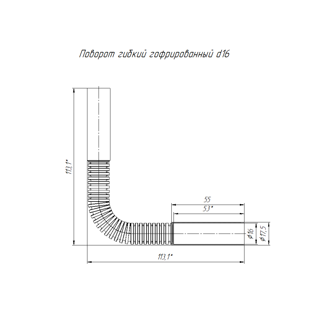 Предназначен для герметичного соединения гладких жёстких труб из пластика под произвольным углом, что позволяет придать более эстетичный внешний вид местам соединения. Используется в случаях сложного монтажа, для обхода препятствий. Минимальный радиус изгиба - 3 внешних диаметра.