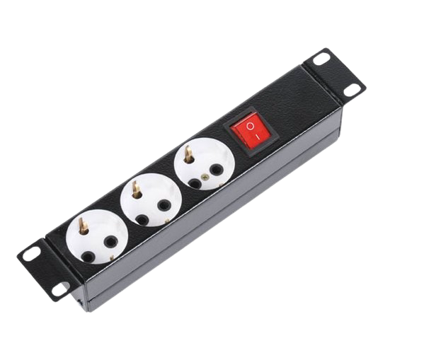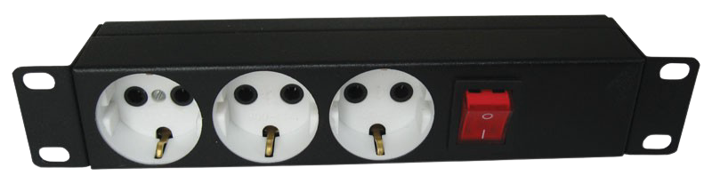 Блок силовых розеток 10" без шнура с выключателем, 3 розетки, БР-3П-10